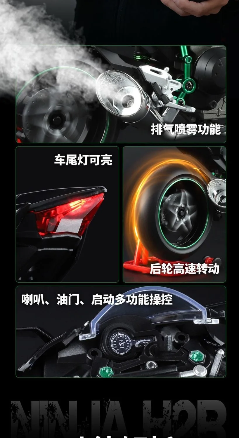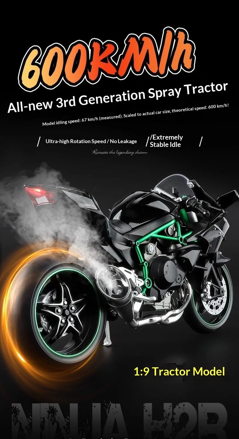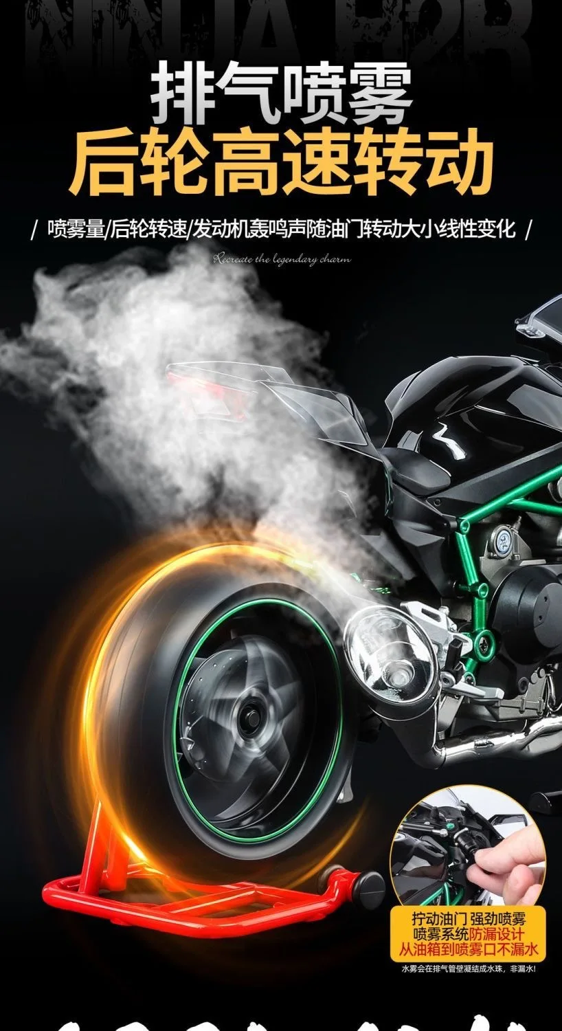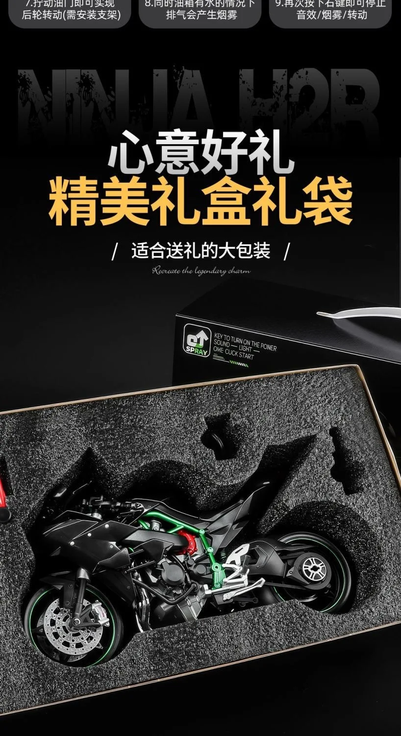 Kawasaki Ninja H2R 1:9 Scale Dynamic Model - Smoke Effect Alloy Motorcycle in Gift Box, Collector‘s Edition Cars