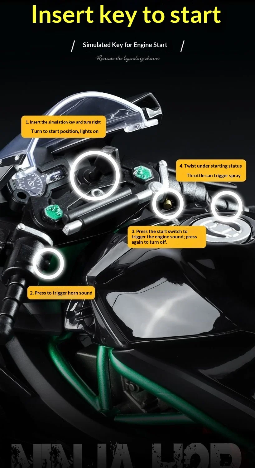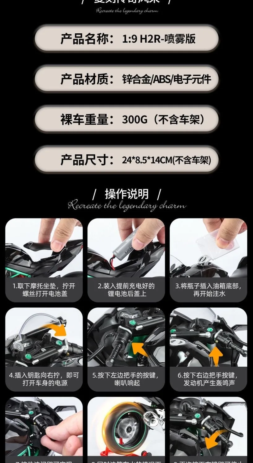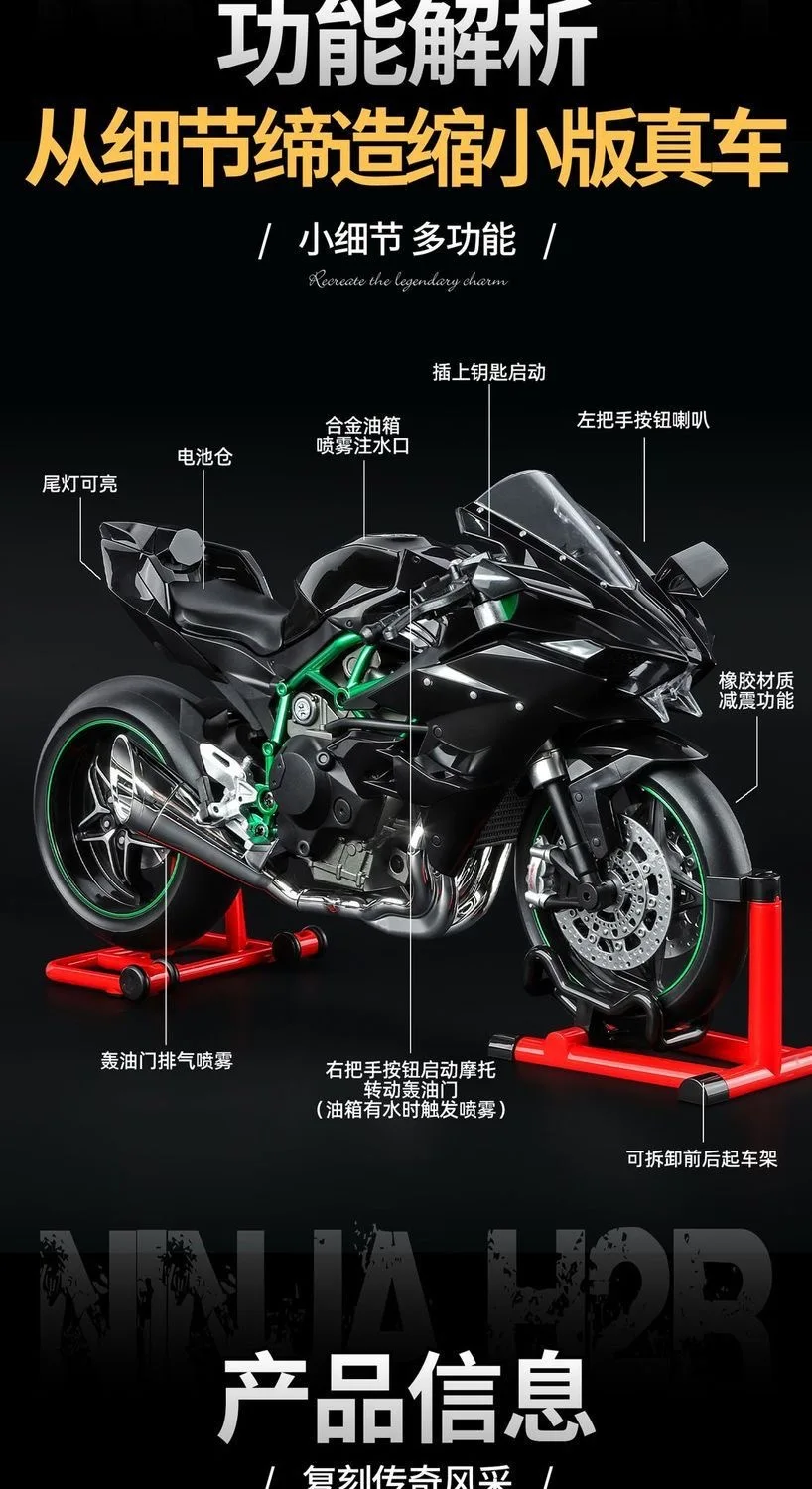 Kawasaki Ninja H2R 1:9 Scale Dynamic Model - Smoke Effect Alloy Motorcycle in Gift Box, Collector‘s Edition Cars