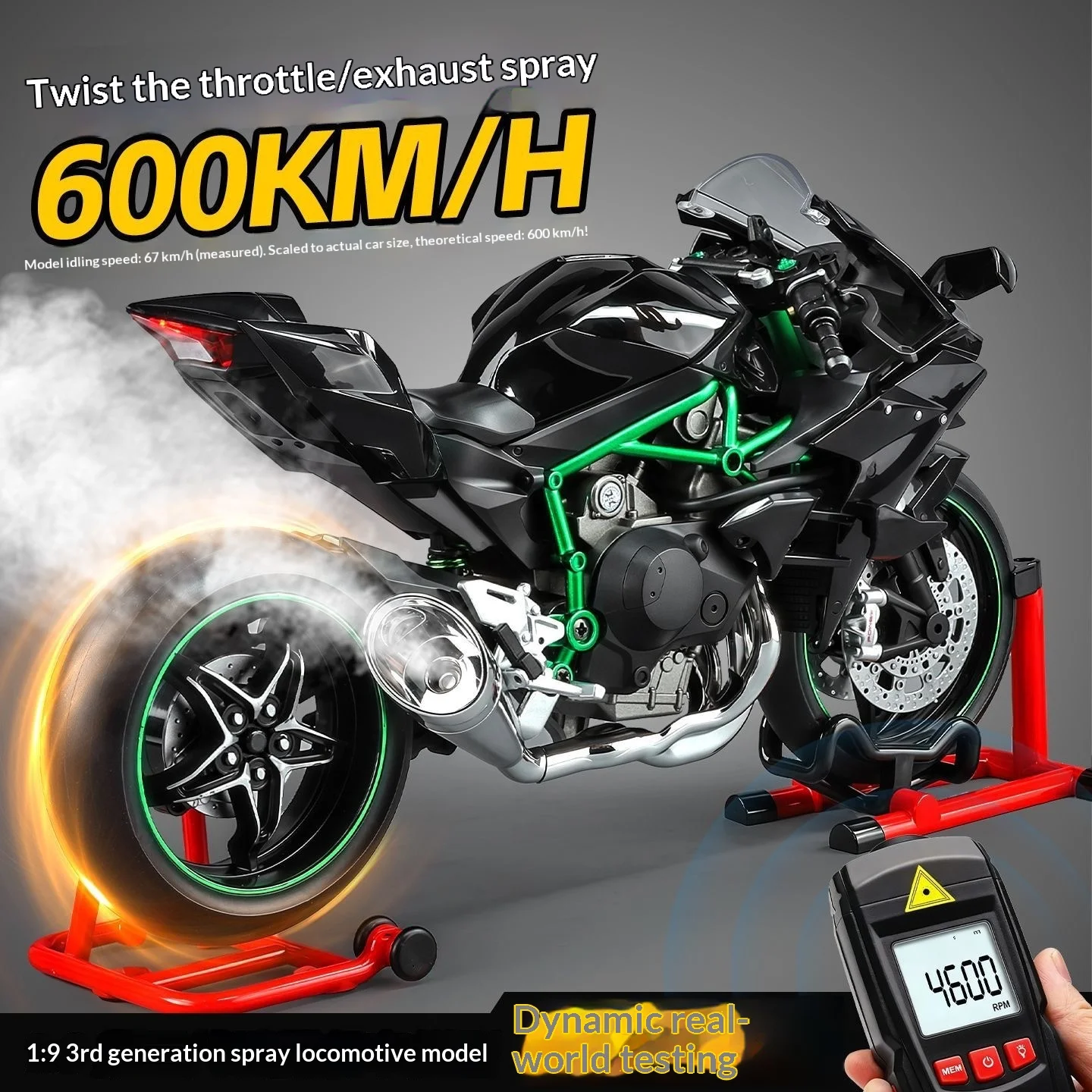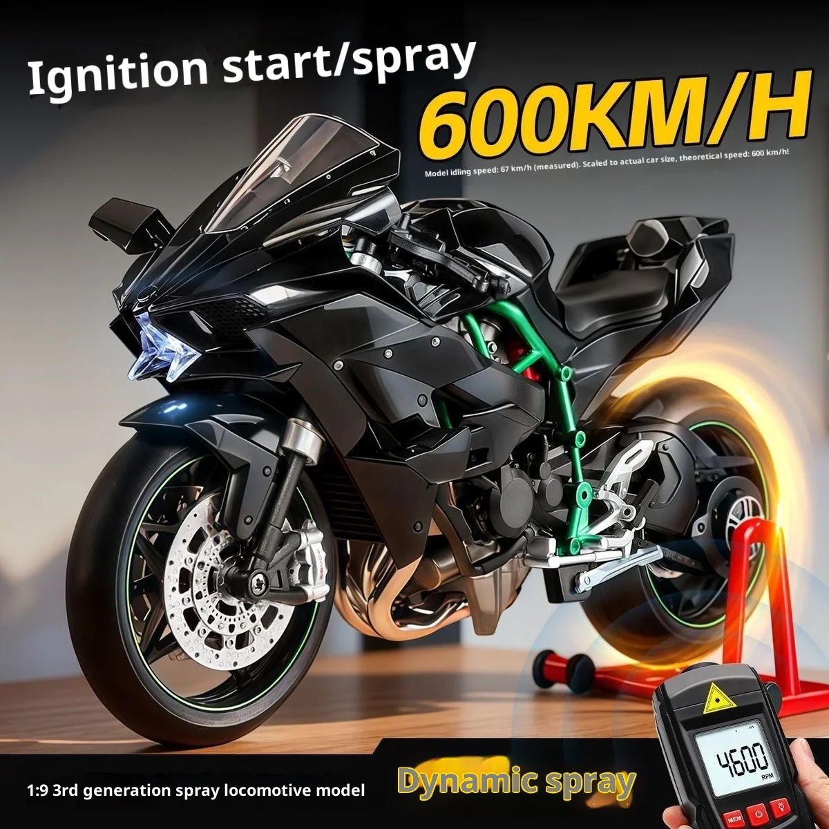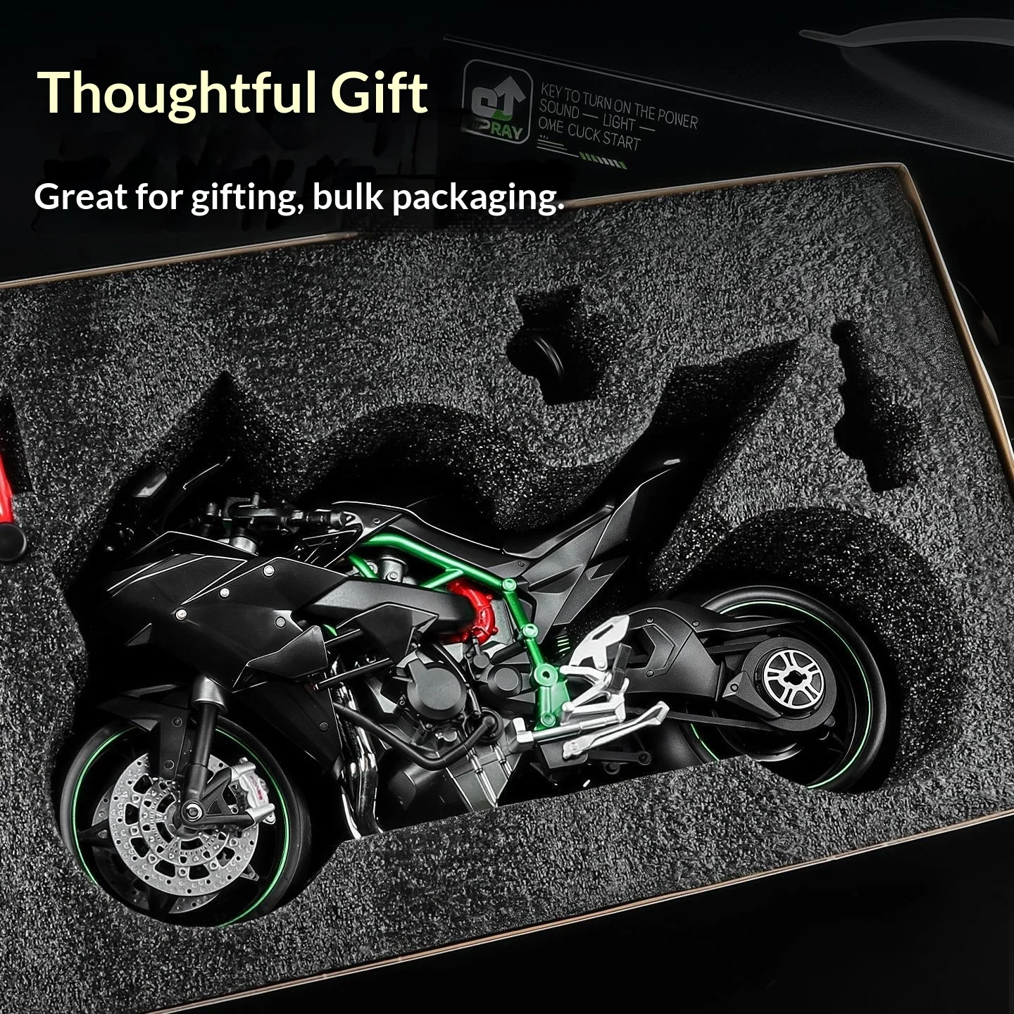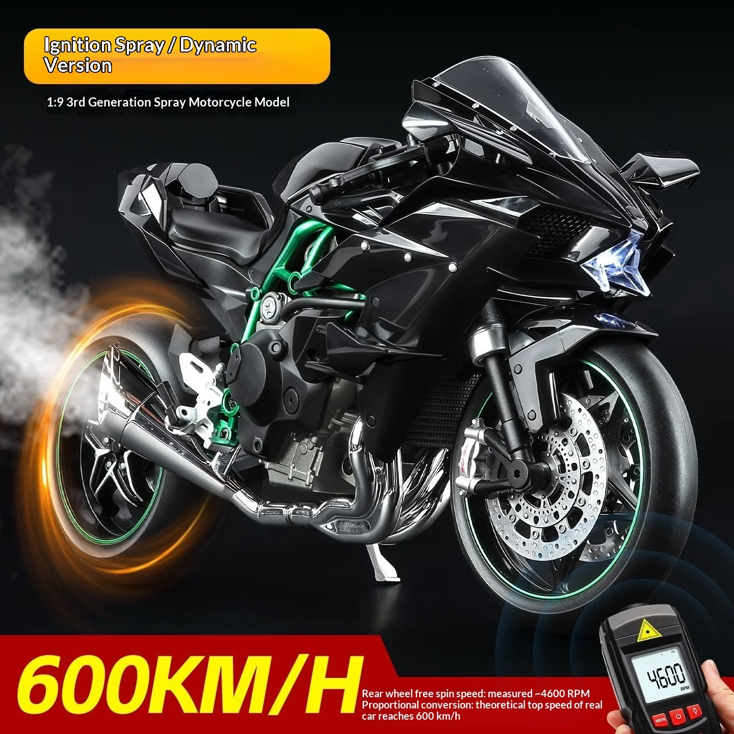 Kawasaki Ninja H2R 1:9 Scale Dynamic Model - Smoke Effect Alloy Motorcycle in Gift Box, Collector‘s Edition Cars
